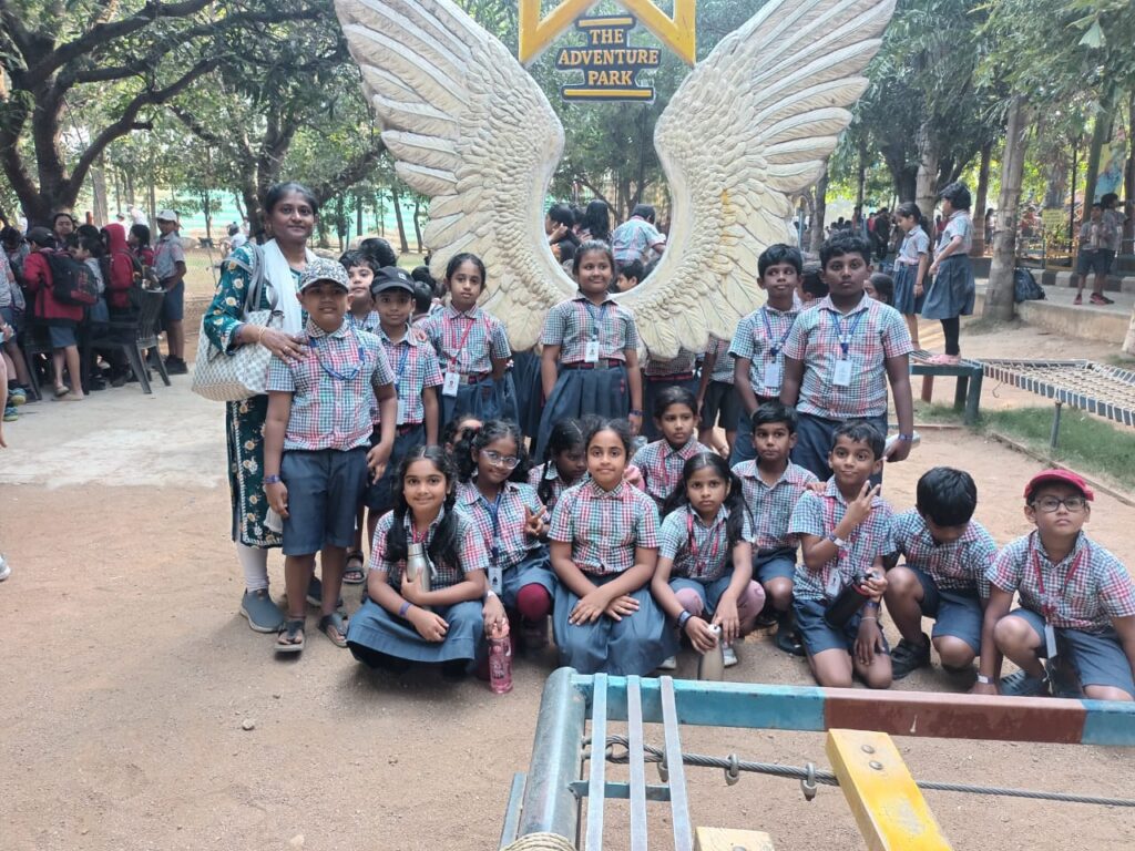 Students of Grades 1–5 enjoyed a delightful and action-packed picnic at Gram Aranyaka. The day was filled with excitement as children hopped onto thrilling rides like the Tarzan swing, slides, and adventure zones that kept their spirits high. The magic show added wonder to the day, leaving everyone amazed and entertained with dazzling tricks.