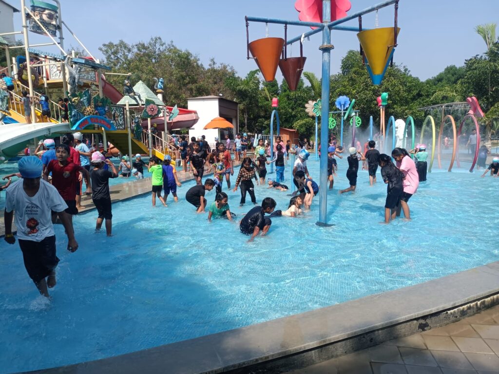 The energy doubled when the DJ set the stage alive—students danced, clapped, and moved to lively music, filling the atmosphere with joy. The highlight of the day was the water rides, where children splashed, played, and bonded with friends, making the experience refreshing and unforgettable.